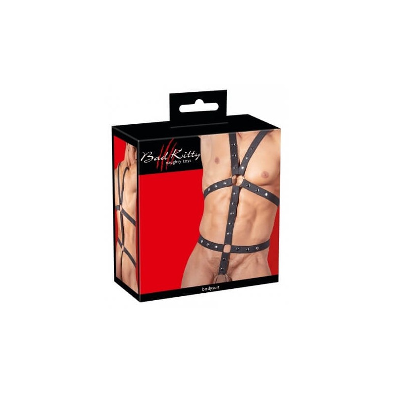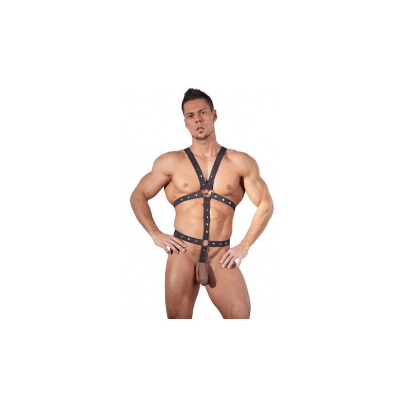 Harness Body Per Uomo con anello fallico,il diametro dell'anello è 5 cm,realizzato con cinghie tessute con materiali morbidi segna non solo con bottoni decorativi, ma anche con un raffinato anello per pene / testicoli (Ø circa 5 cm), che conferisce al suo pezzo migliore un aspetto efficace! Regolabile. Nero.